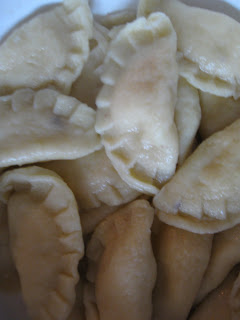 Mamina na Slovensku urobila super pirohy, ktoré si objednala moja kamarátka Zdenka. Mali sme uvarené zemiaky, tak ich nastrúhala a spravila cesto. Potrebujete: 2 varené zemiaky, hladkú a polohrubú múku pridávajte podľa hustoty cesta, vajíčko dajte v prípade, keď zemiaky majú málo škrobu . Vymiešajte cesto do hladka a rozdeľte na polovicu. Cesto rozvaľkajte a nakrájate ho na kocky . Na každú dajte malú lyžičku plnky (podľa chuti) a zalepte. Mamina má super formu, ktorou vyrežete cesto a aj zlepíte. Dá sa kúpiť v domácich potrebách.